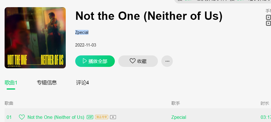 求歌,Zpecial - Not the One (Neither of Us)
