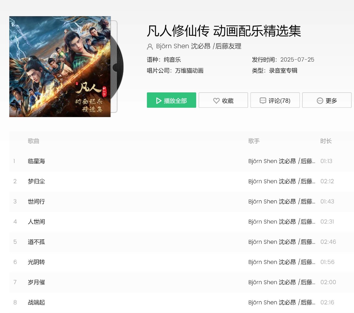 求《凡人修仙传》动漫的音乐专辑,在QQ音乐,想要无损的,质量越高越好。